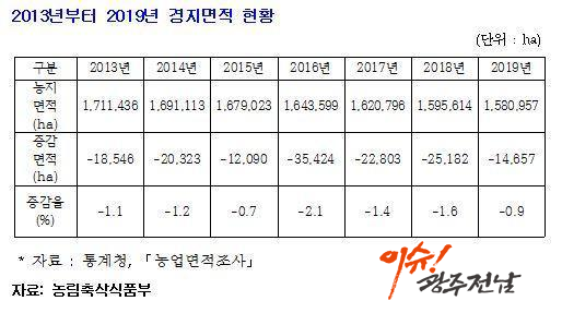 簡 2013 171ha 6⸸ 2019 158ha 13ha پ. ǵ 260ha 83迡 ϴ 2.1ha ̴.