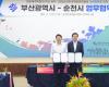 ¼øÃµ½Ã(½ÃÀå ³ë°ü±Ô)´Â 1ÀÏ ¼øÃµ¸¸±¹Á¦½ÀÁö¼¾ÅÍ ÄÁÆÛ·±½ºÈ¦¿¡¼ ºÎ»ê±¤¿ª½Ã(½ÃÀå ¹ÚÇüÁØ)¿Í 2030¼¼°è¹Ú¶÷ȸ ºÎ»ê À¯Ä¡ ¹× 2023¼øÃµ¸¸±¹Á¦Á¤¿ø¹Ú¶÷ȸÀÇ ¼º°ø °³ÃÖ Çù·ÂÀ» À§ÇÑ ¾÷¹«Çù¾àÀ» ü°áÇß´Ù.