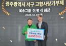 ±¤ÁÖ±¤¿ª½Ã ¼±¸(±¸Ã»Àå ±èÀ̰)´Â ¸ñ¼Û±×·ì À̸í½Ä ȸÀåÀÌ Áö¿ª ¹ßÀü°ú Ãë¾à°èÃþ Áö¿øÀ» À§ÇÑ °íÇâ»ç¶û±âºÎ±Ý 500¸¸¿øÀ» ±âŹÇß´Ù°í 30ÀÏ ¹àÇû´Ù. À̸í½Ä ȸÀåÀº ¸ñ¼Û»ê¾÷°³¹ß(ÁÖ), ¸ñ¼Û¿¤¸®º£ÀÌÅÍ(ÁÖ) µî Áö¿ª ±â¹ÝÀÇ Á¾ÇÕÁÖÅðü¸® Àü¹®±â¾÷À» À̲ø¸ç ¿ÃÇØ À强¡¤¿µ¾Ï¡¤°î¼º¡¤¿µ±¤¡¤¼øÃ¢ µî È£³²±Ç ÁöÀÚü¿¡ ÀÕµû¶ó ±âºÎ ¡¦